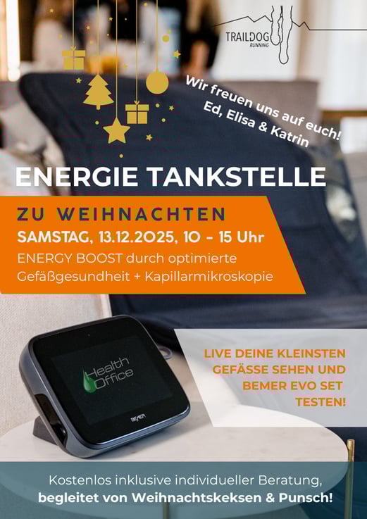 Außerdem könnt euch auch kurz bei der BEMER Energietankstelle ausruhen, eine Session dauert nur 8 Minuten und fördert eure Durchblutung, ein Gamechanger für müde Beine!
